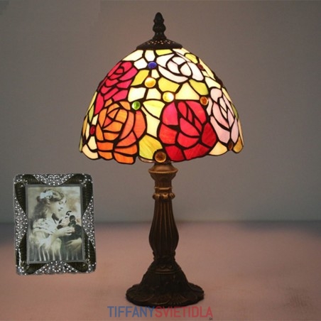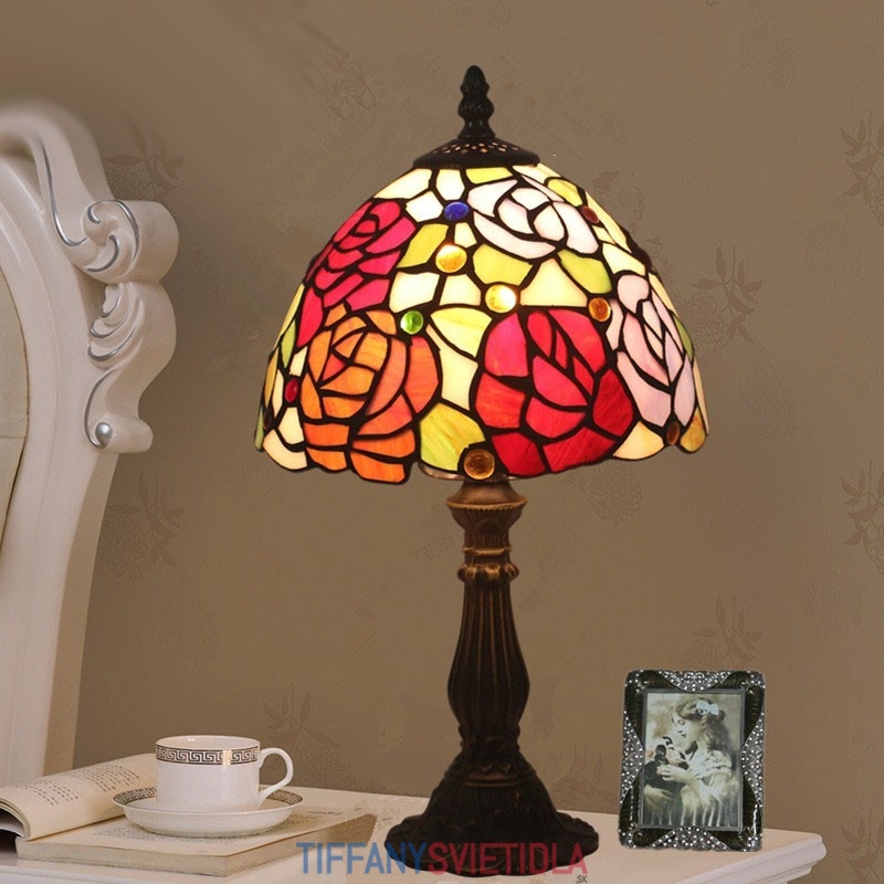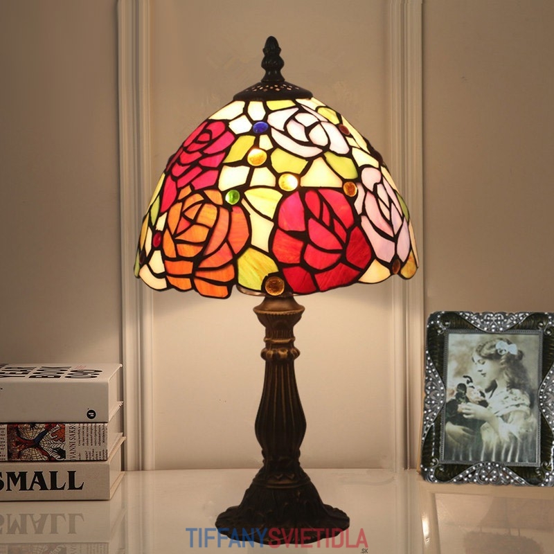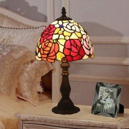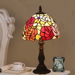 20 cm Európska stolová lampa Tiffany z farebného skla v štýle ruže
