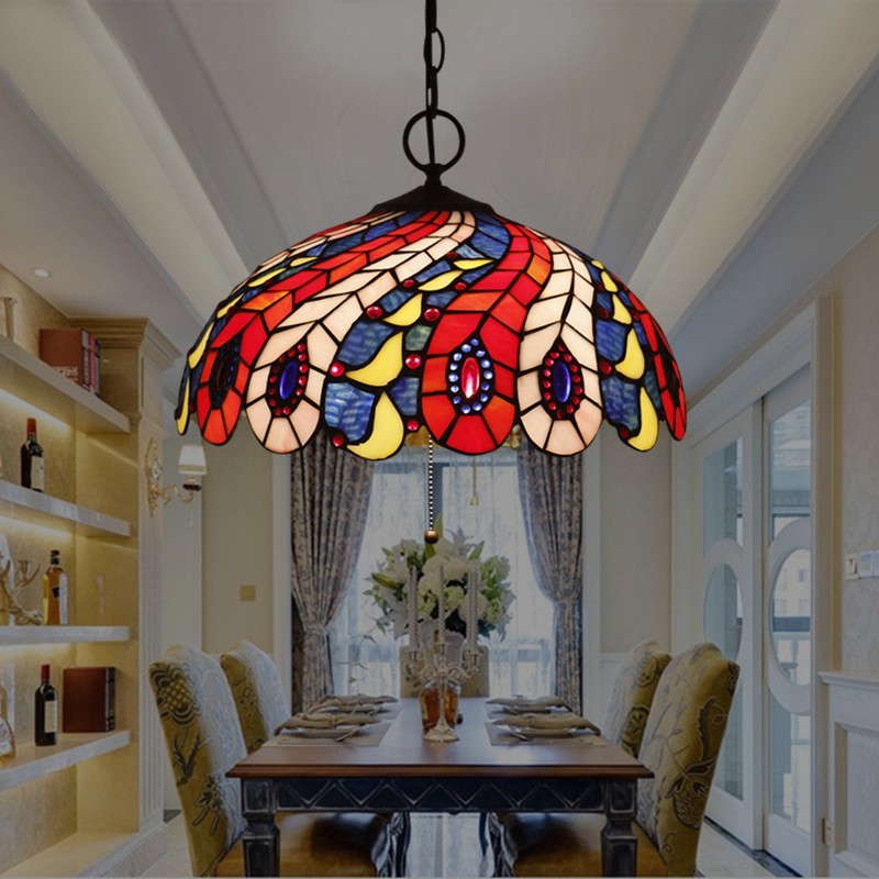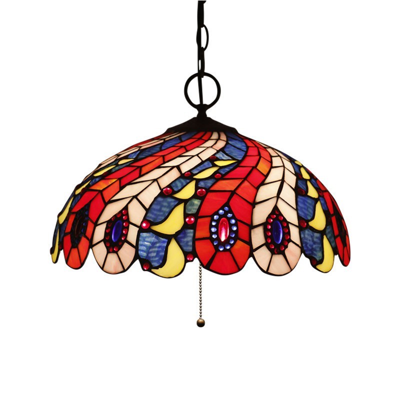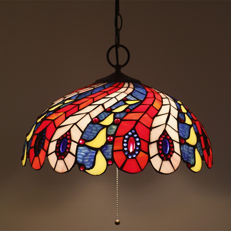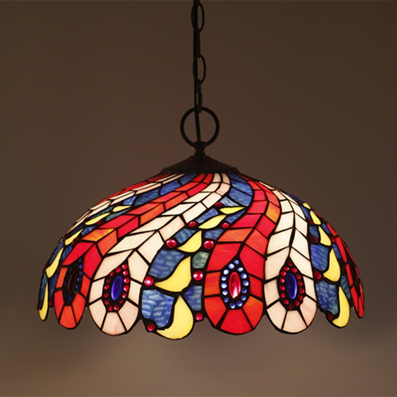 40 cm Európske závesné svietidlo Tiffany z farebného skla