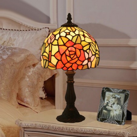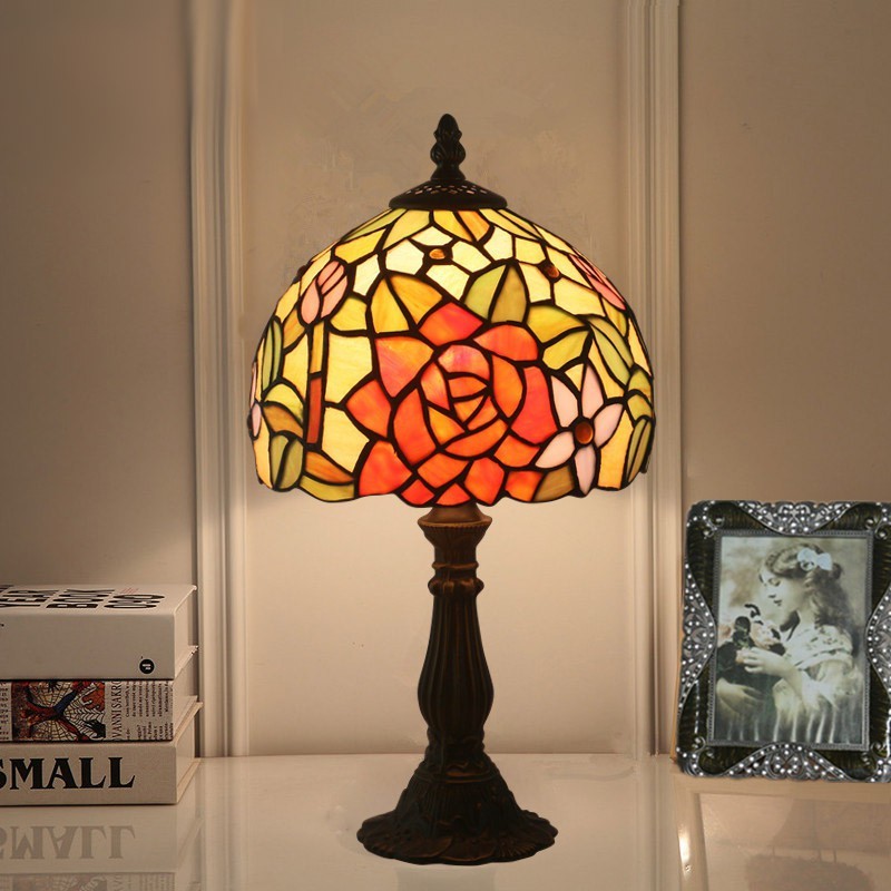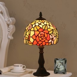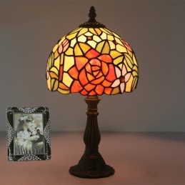 20 cm Európska stolová lampa Tiffany z farebného skla v štýle ruže