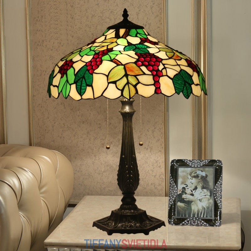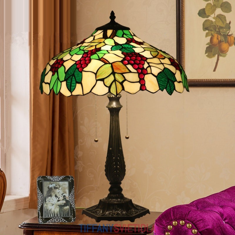 40 cm Európska stolová lampa Tiffany z farebného skla v štýle hrozna