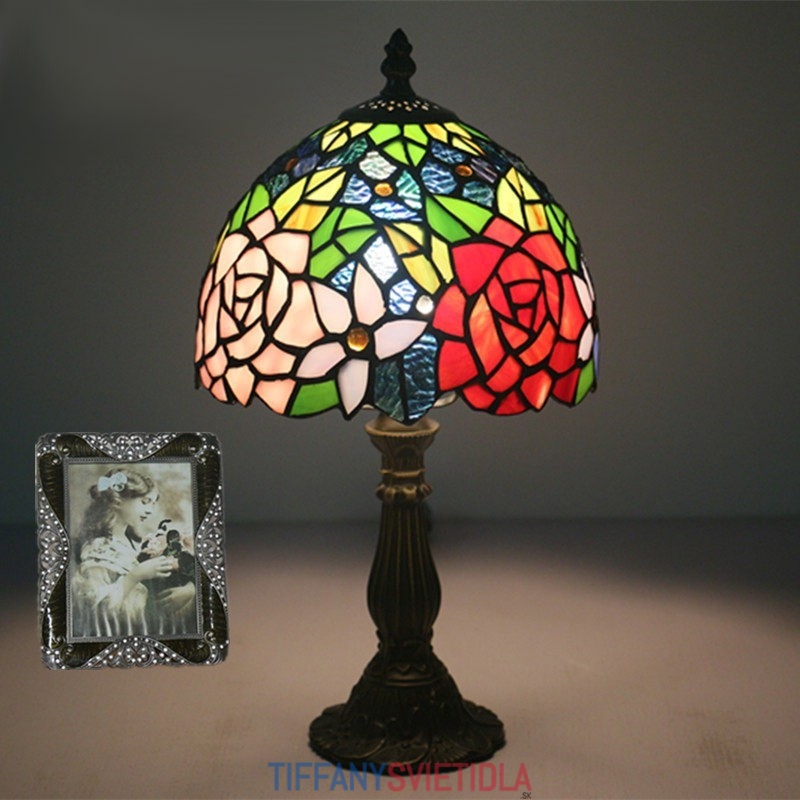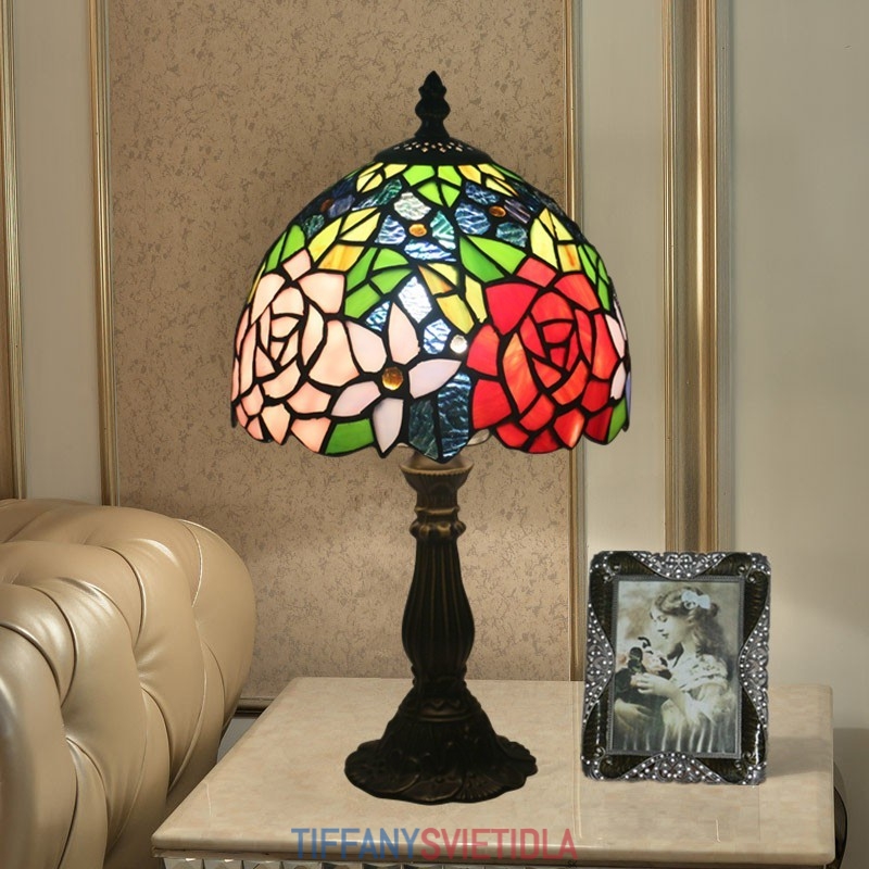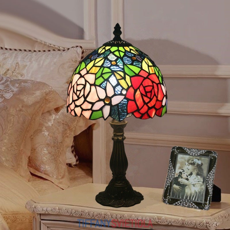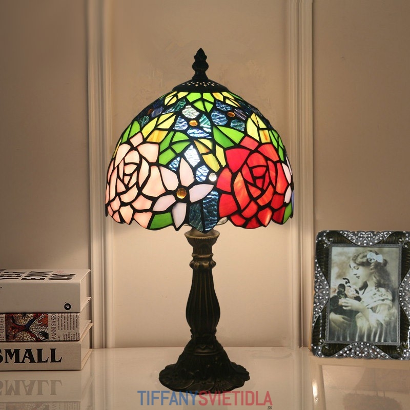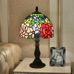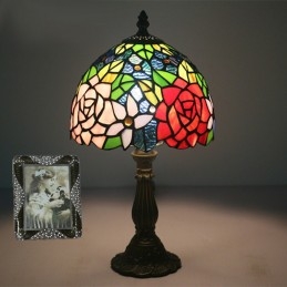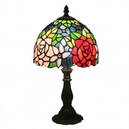 20 cm Európska stolová lampa Tiffany z farebného skla v štýle ruže