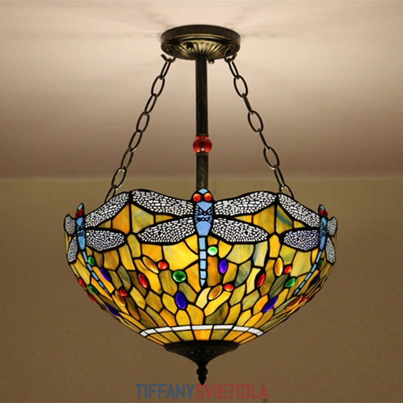 40 cm Vážka Európska Stained Glass Tiffany Flush Mount