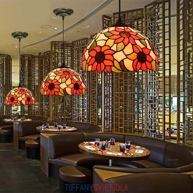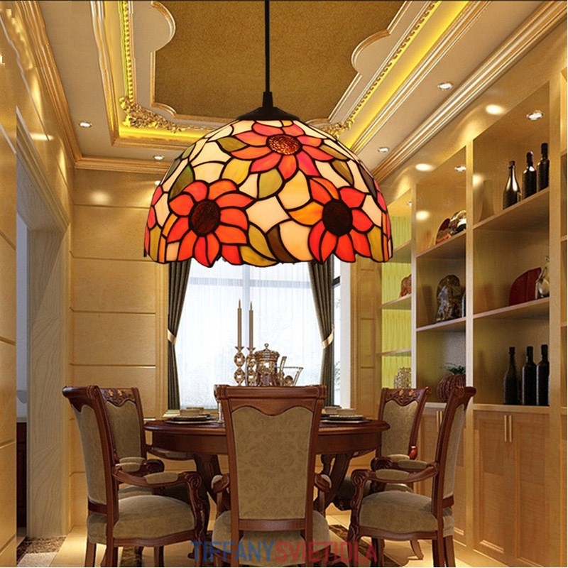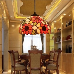 30 cm Európske závesné svietidlo v štýle slnečnice Tiffany z farebného skla
