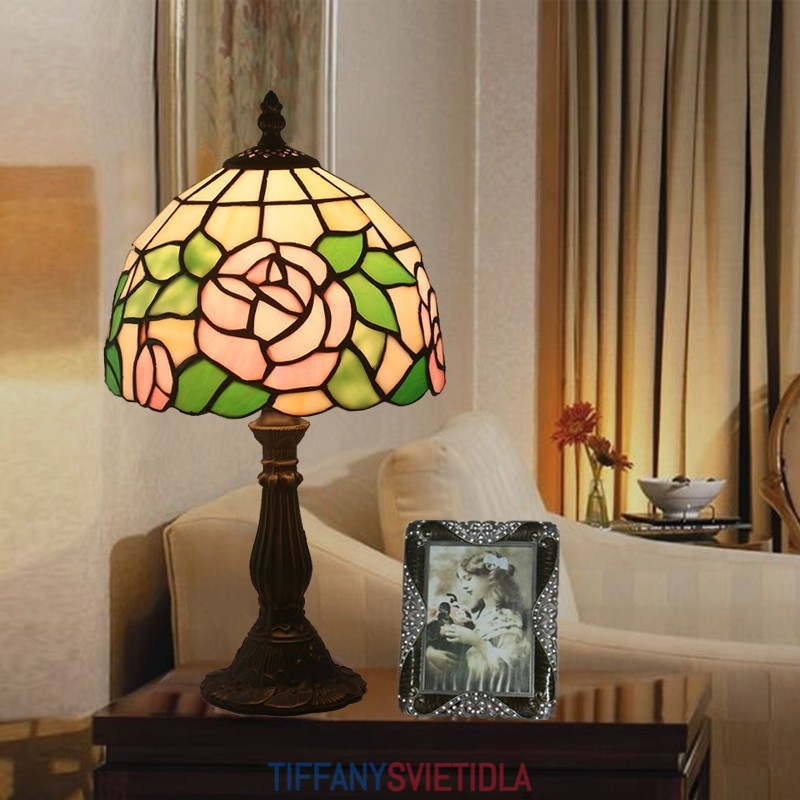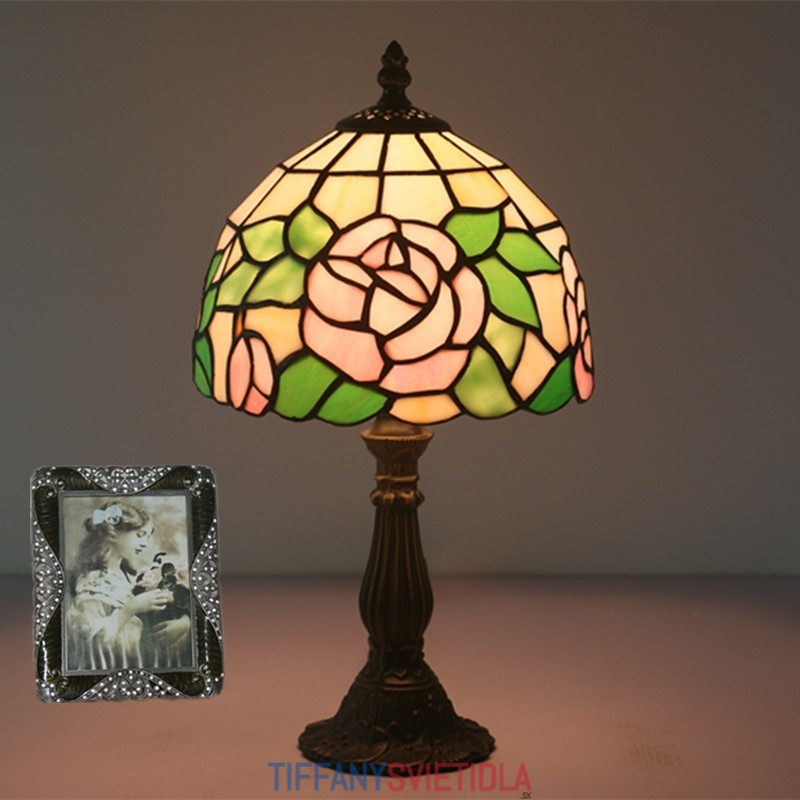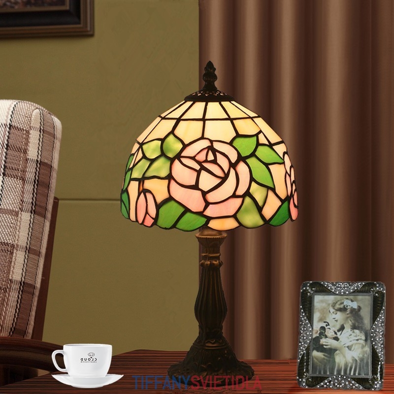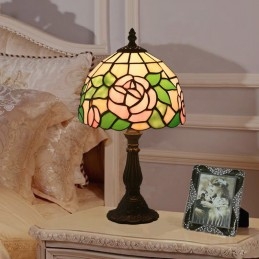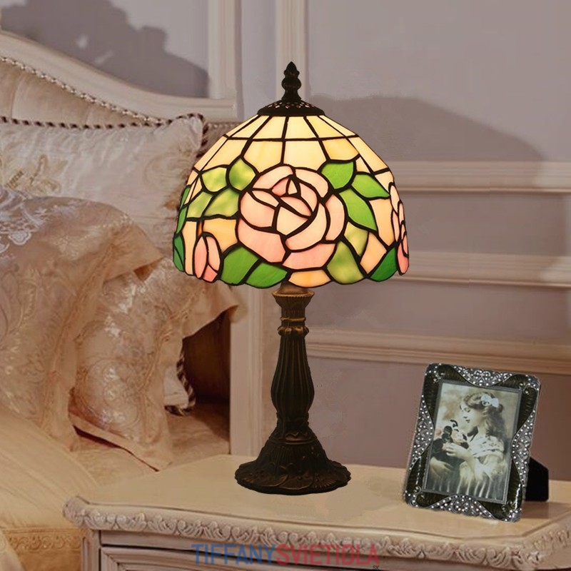 20 cm Európska stolová lampa Tiffany z farebného skla v štýle ruže