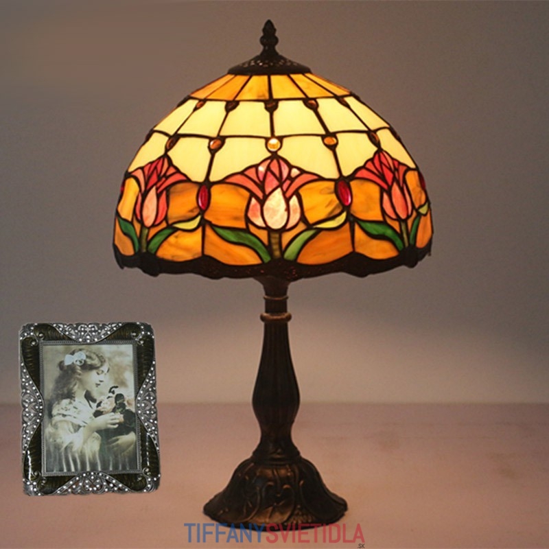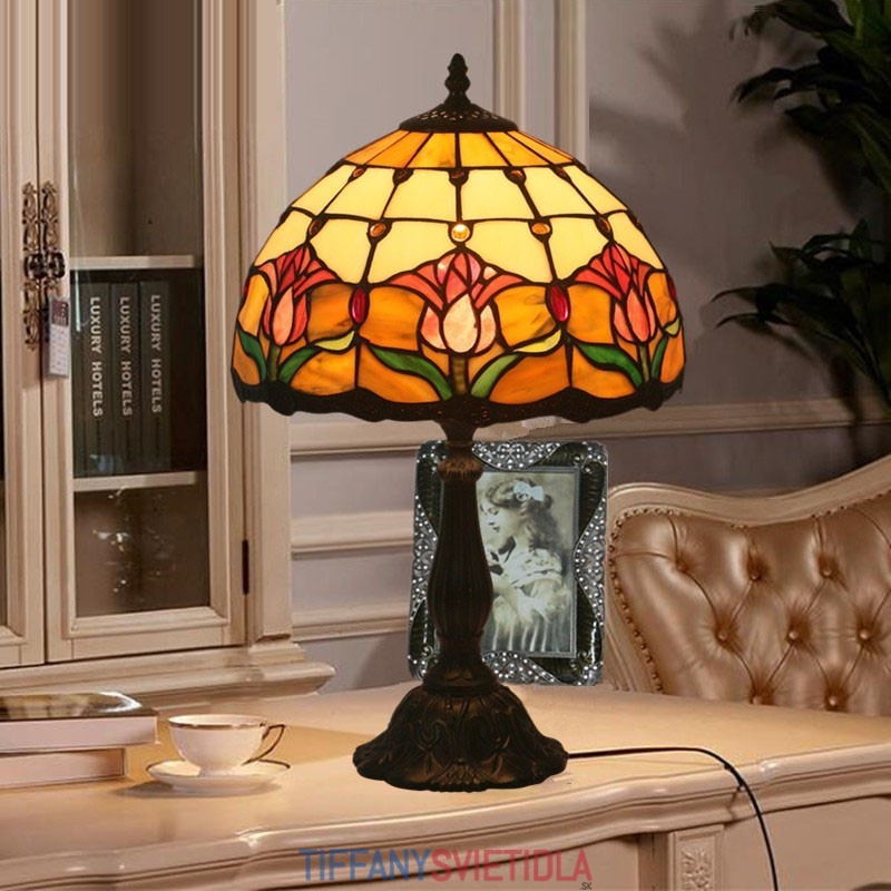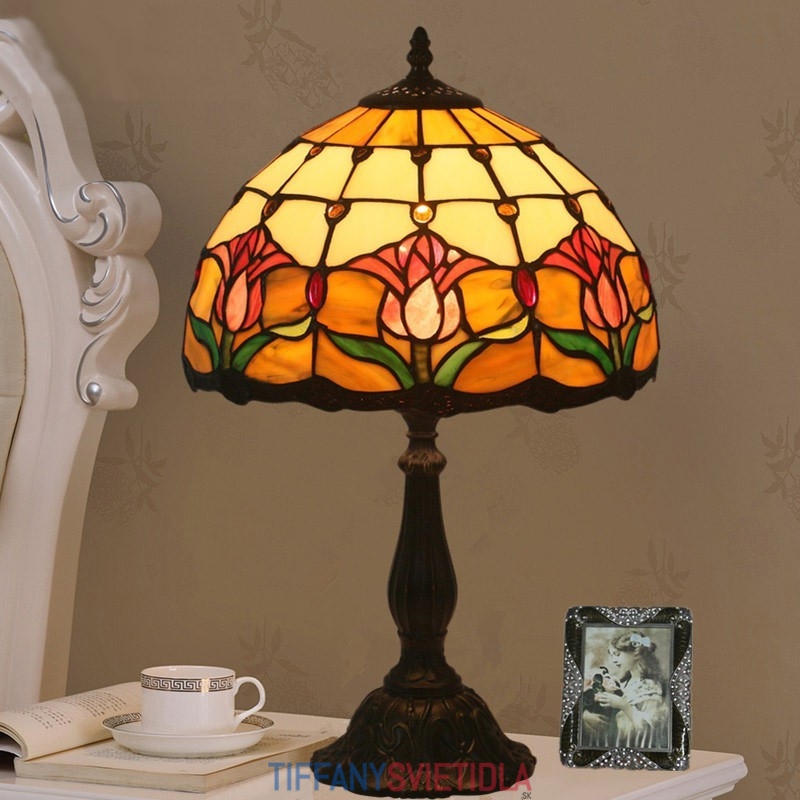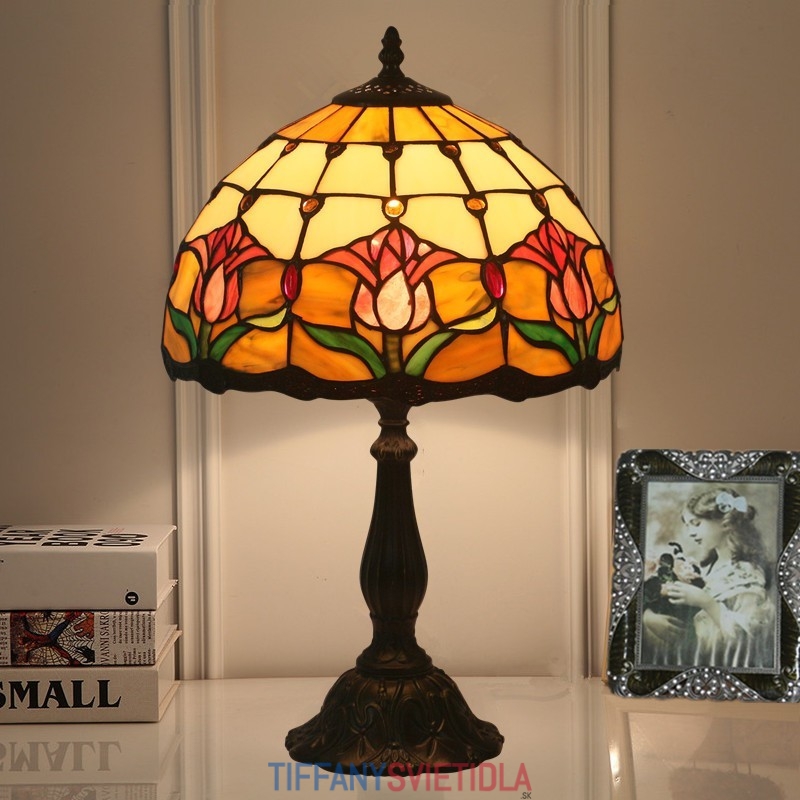 30 cm Európska stolová lampa Tiffany z farebného skla v štýle tulipánov