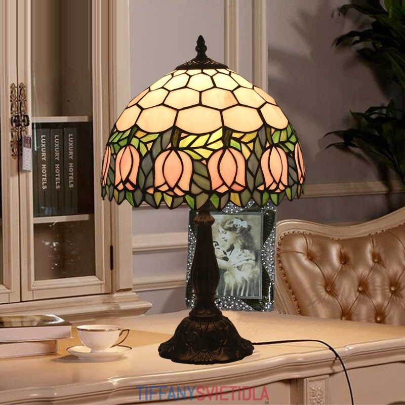 30 cm Európska stolová lampa Tiffany z farebného skla v štýle tulipánov