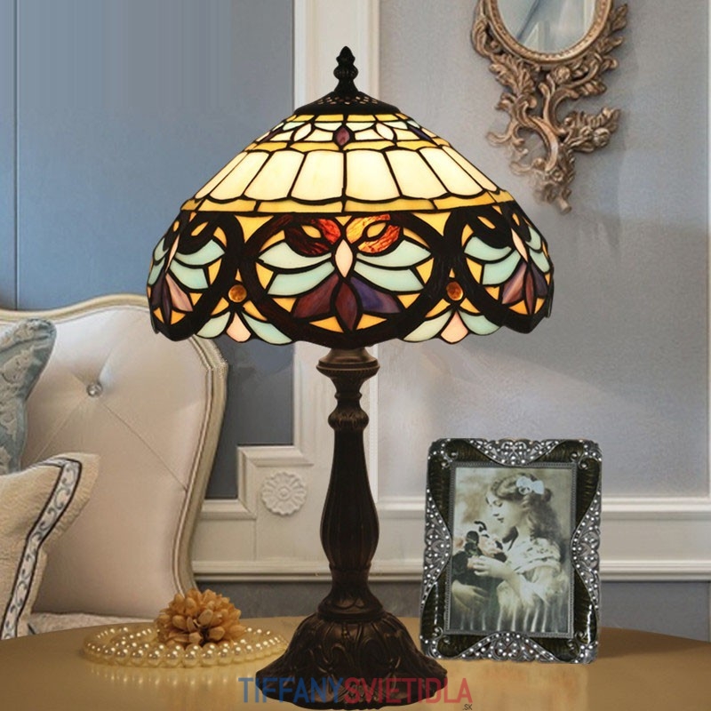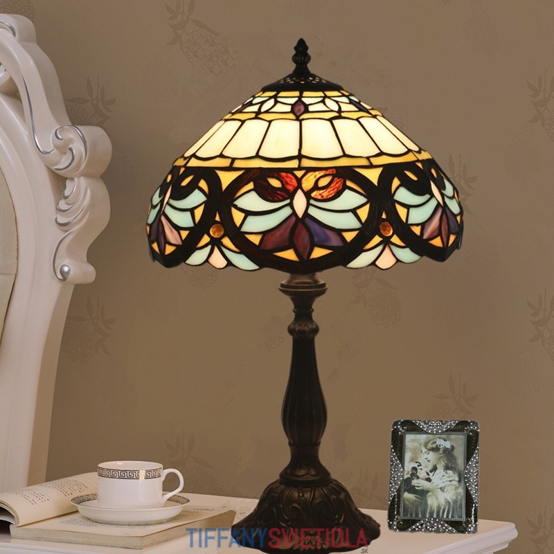 30 cm Európska stolová lampa Tiffany v barokovom štýle z farebného skla