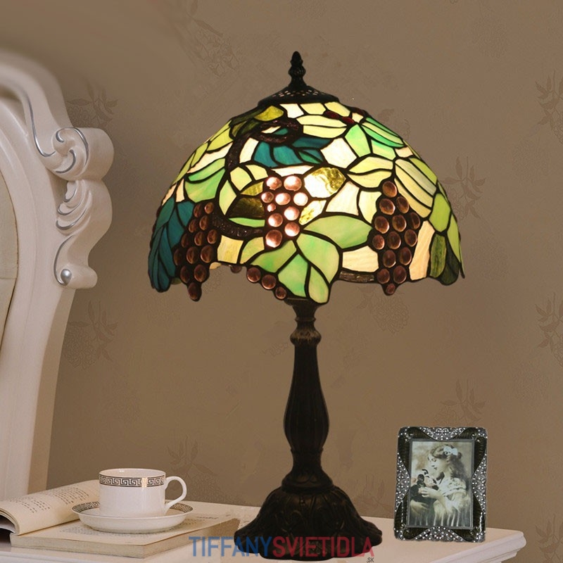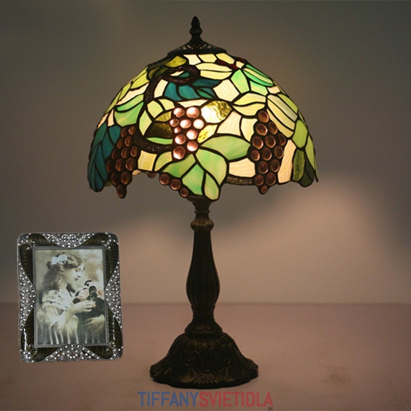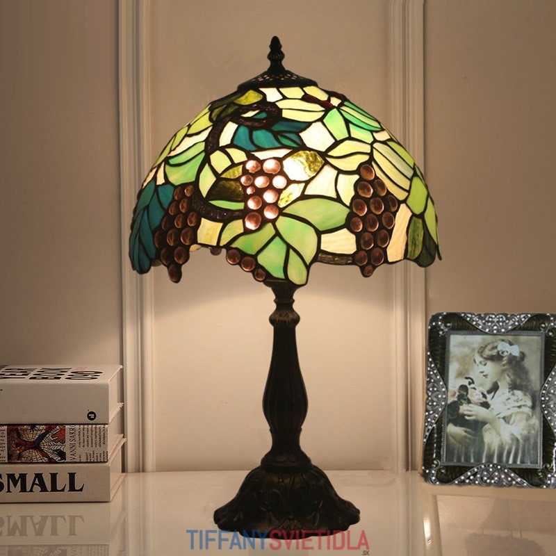 30 cm vidiecka stolová lampa Tiffany z farebného skla v štýle hrozna