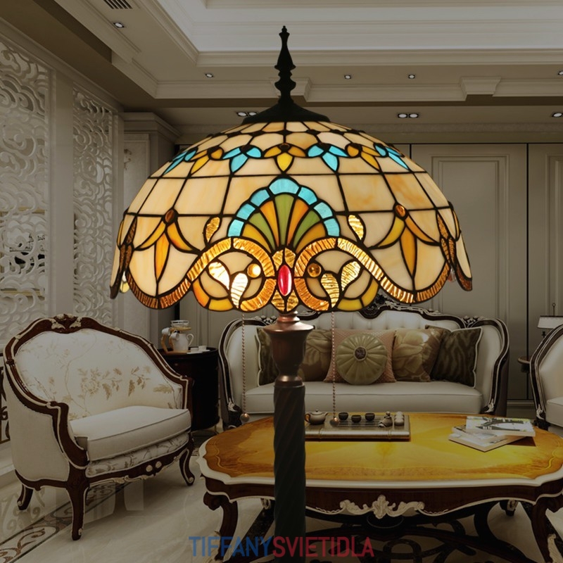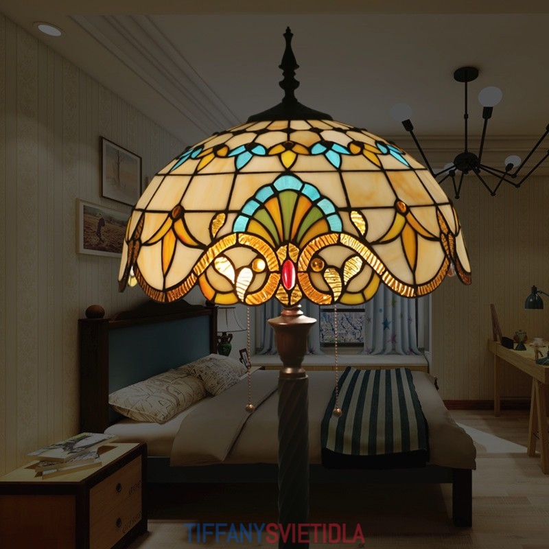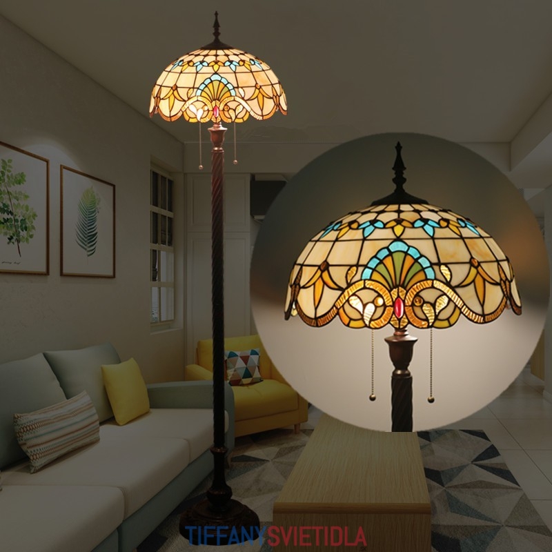 40 cm Európska stojaca lampa v barokovom štýle Tiffany z farebného skla