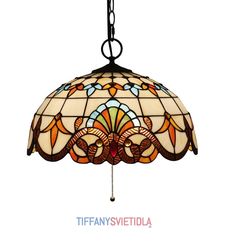 40 cm Európske závesné svietidlo Tiffany z farebného skla