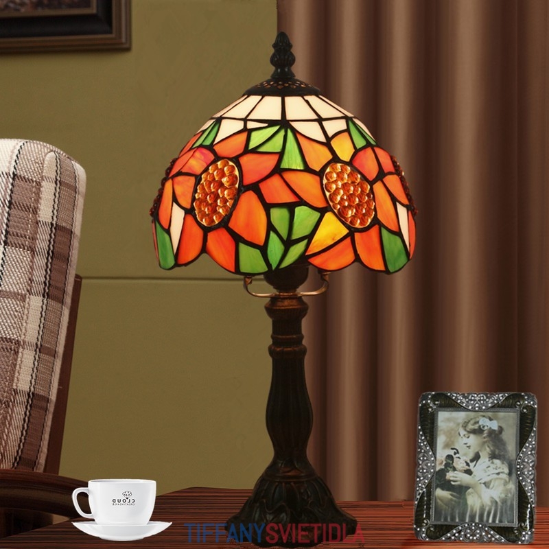 18 cm Európska stolová lampa Tiffany v štýle slnečnice z farebného skla