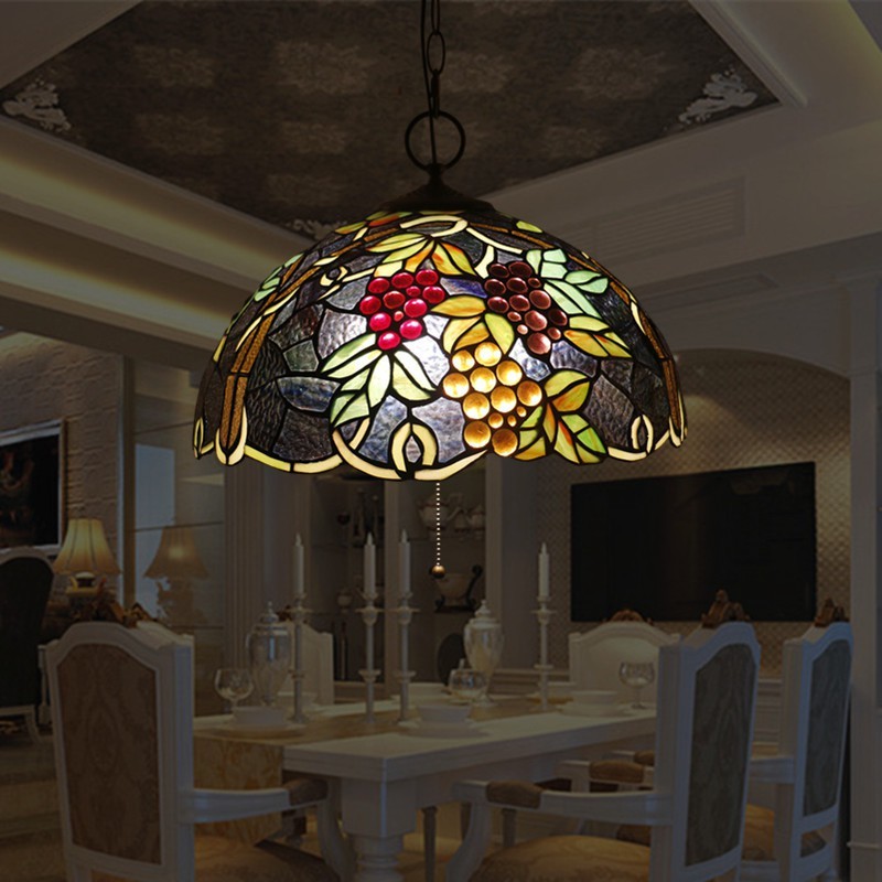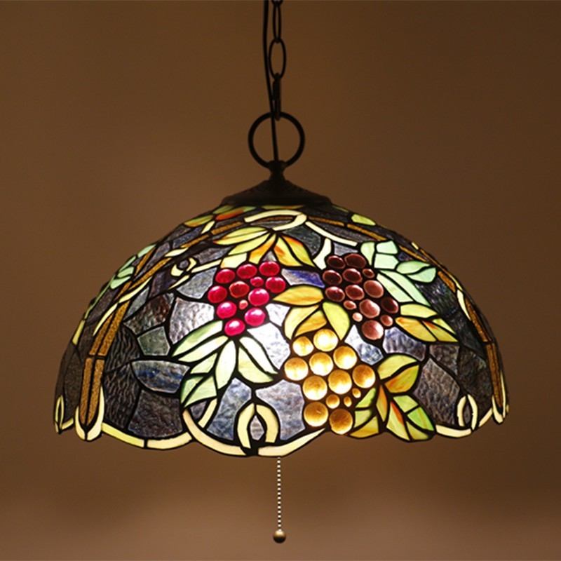 40 cm Európske závesné svietidlo Tiffany z farebného skla