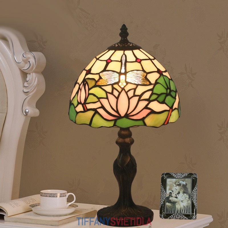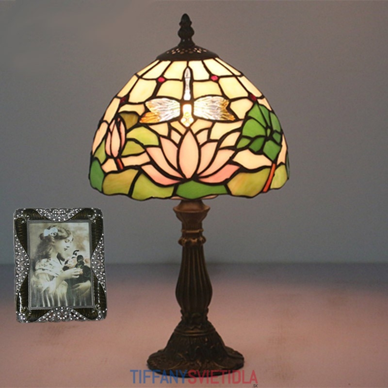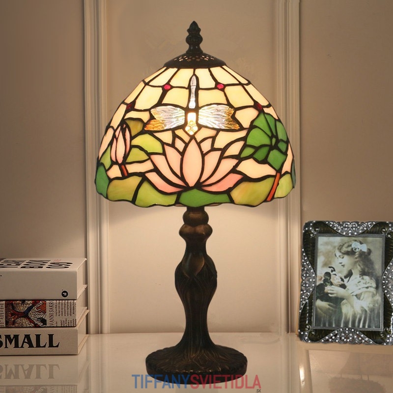 20 cm Európska stolná lampa Tiffany z farebného skla v štýle vážky