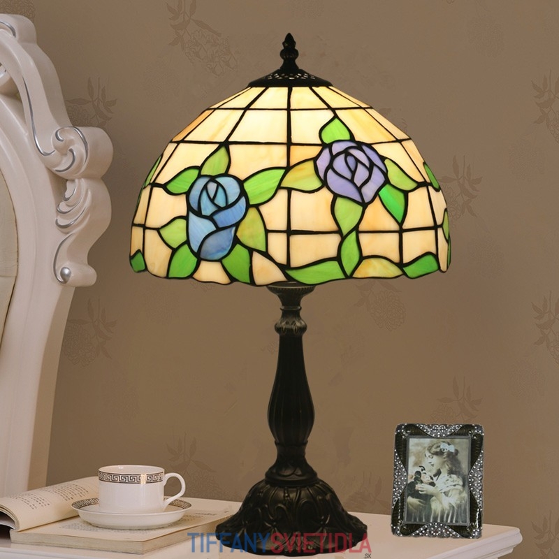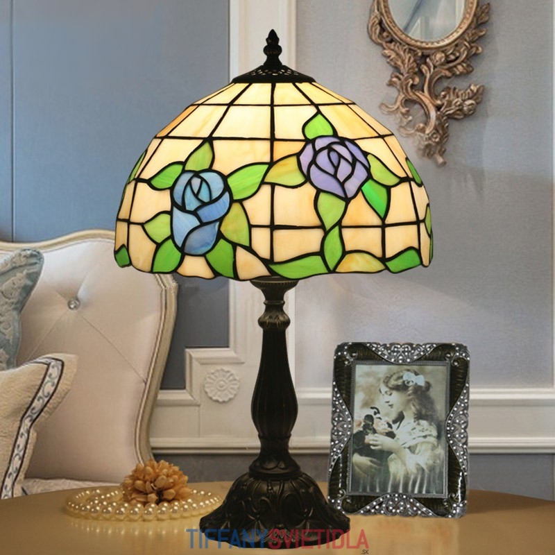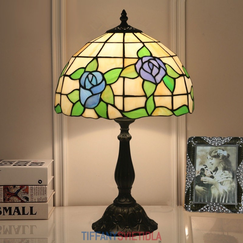 30 cm Európska stolná lampa z farebného skla v štýle ruže Tiffany