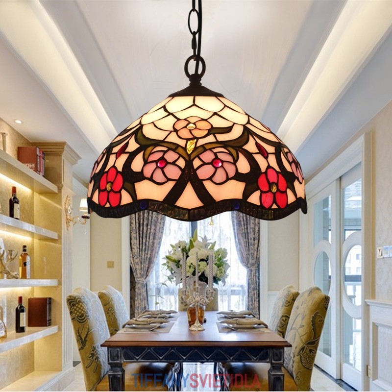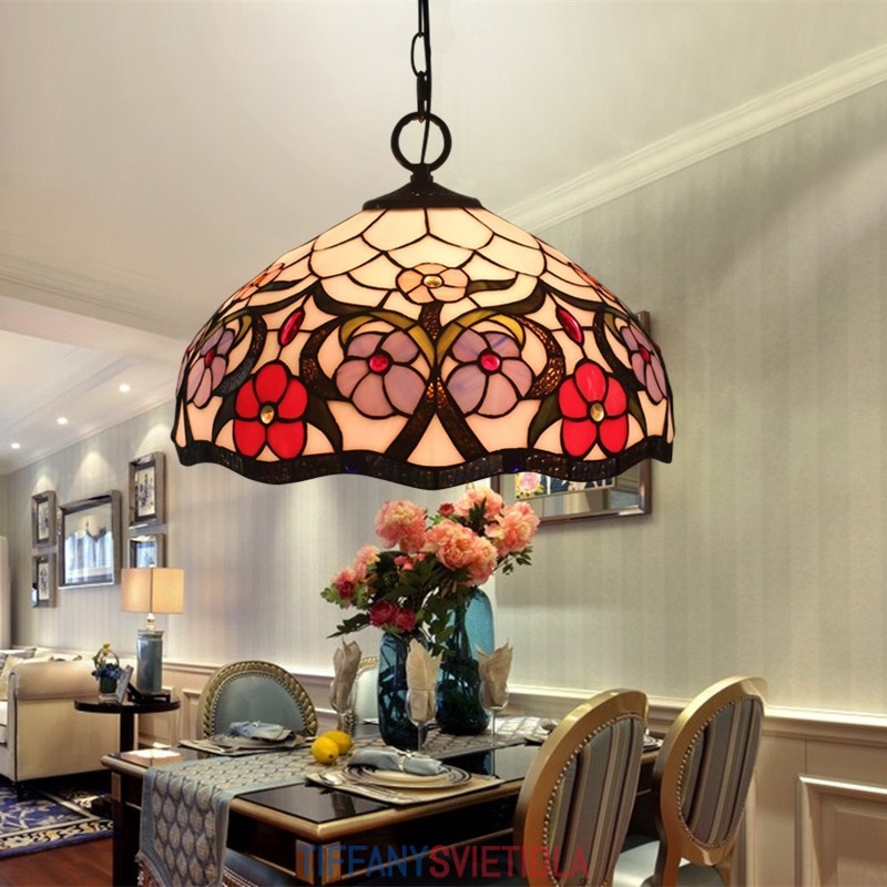 40 cm Európske závesné svietidlo Tiffany z farebného skla