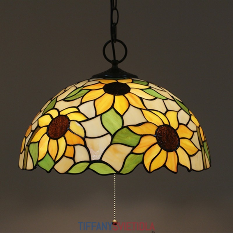 Slnečnica 40 cm Európske závesné svietidlo Tiffany z farebného skla