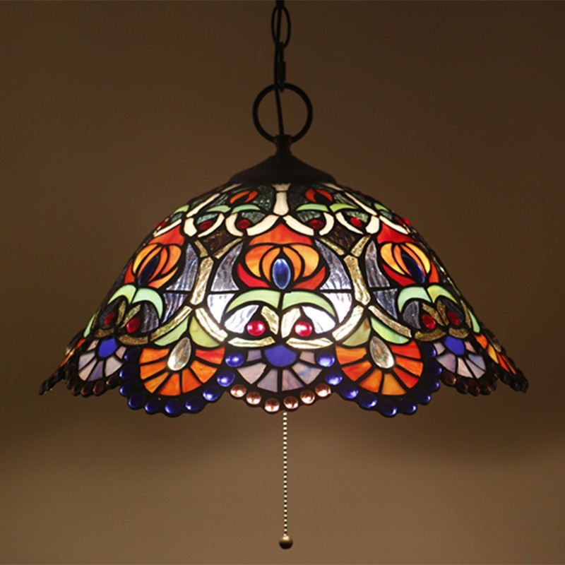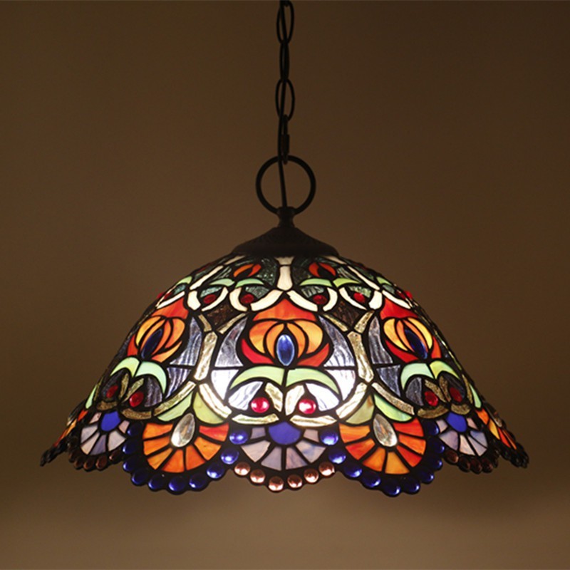 40 cm Európske závesné svietidlo Tiffany z farebného skla