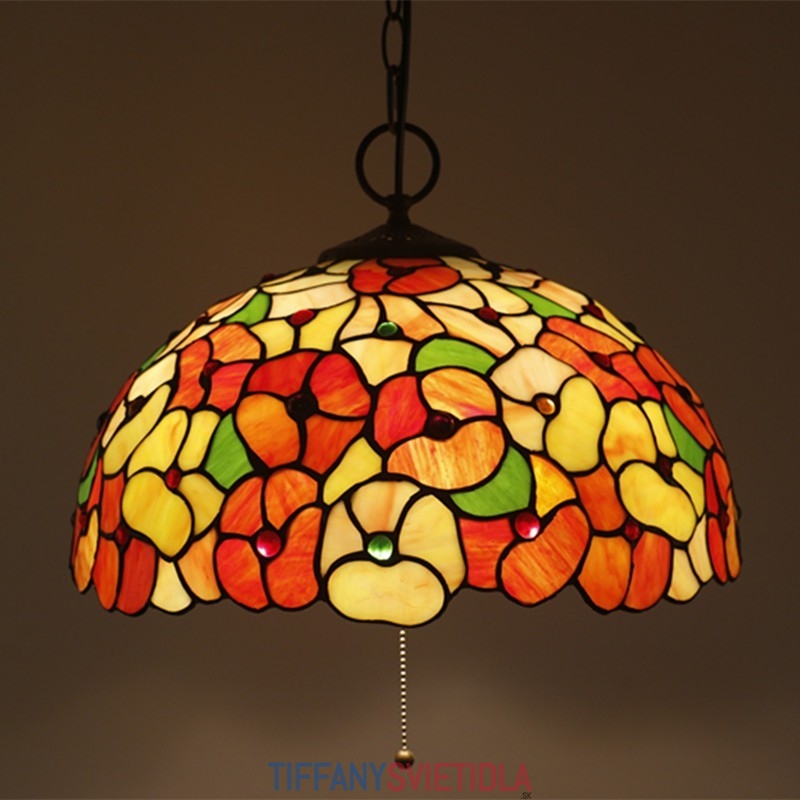 40 cm Európske závesné svietidlo Tiffany z farebného skla