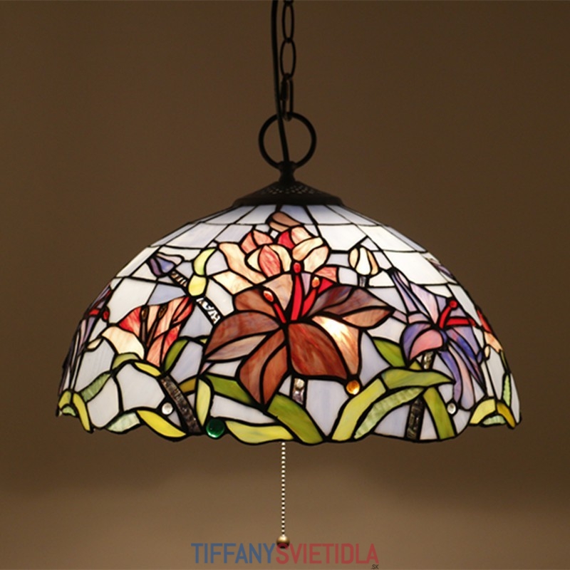 40 cm Európske závesné svietidlo Tiffany z farebného skla