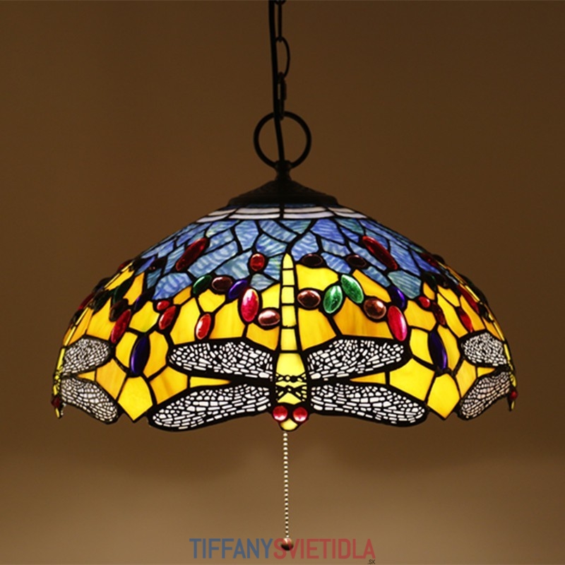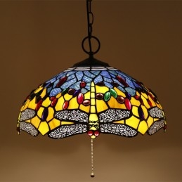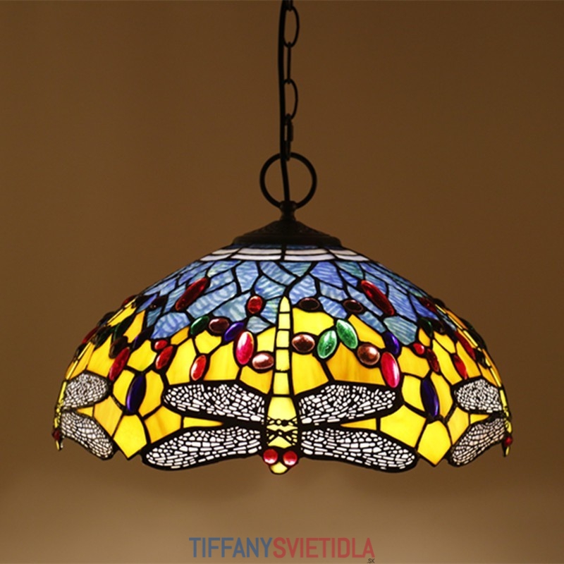 40 cm Európske závesné svietidlo Tiffany v štýle vážky z farebného skla