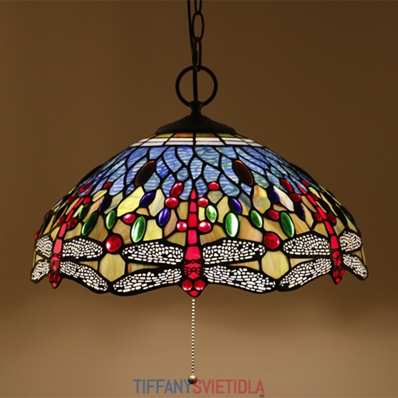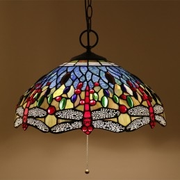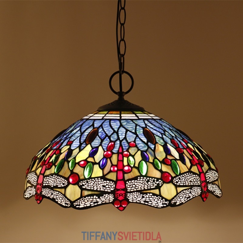 40 cm Európske závesné svietidlo Tiffany v štýle vážky z farebného skla