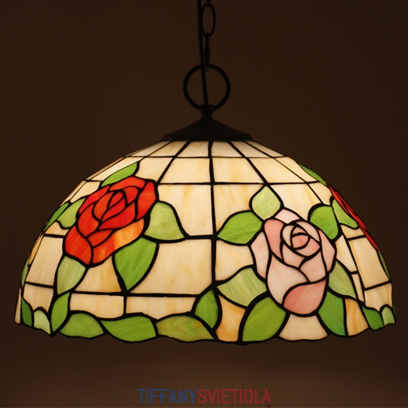 40 cm Európske závesné svietidlo Tiffany z farebného skla