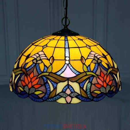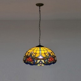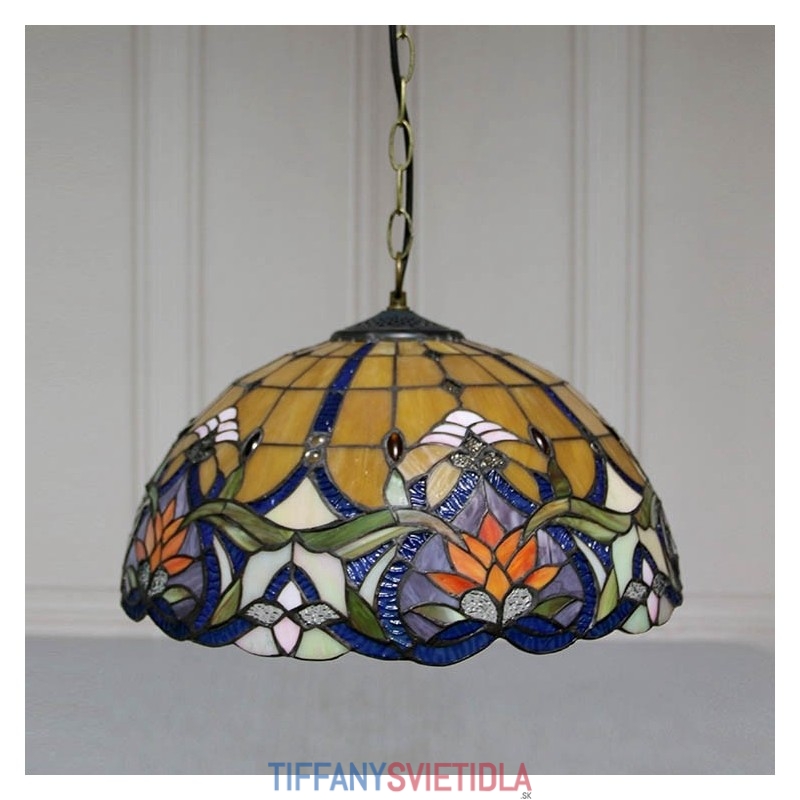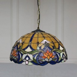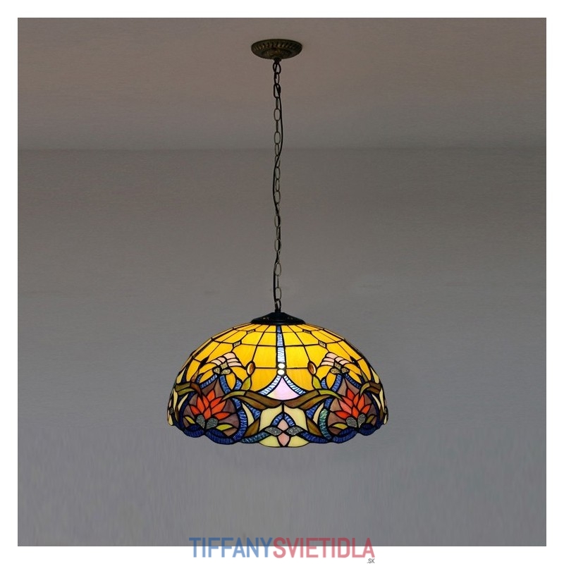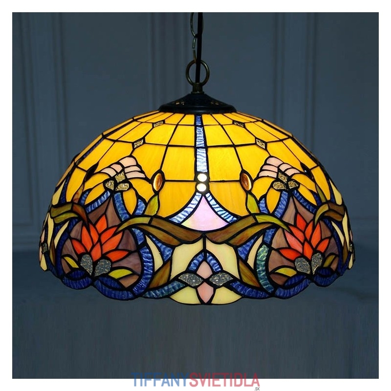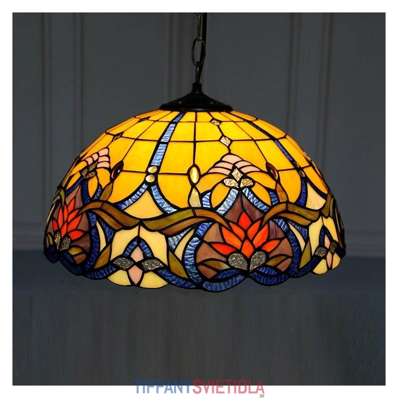 16-palcové závesné svietidlo v štýle Tiffanyho Elegantné kvetinové závesné osvetlenie z farebného skla