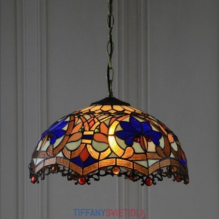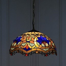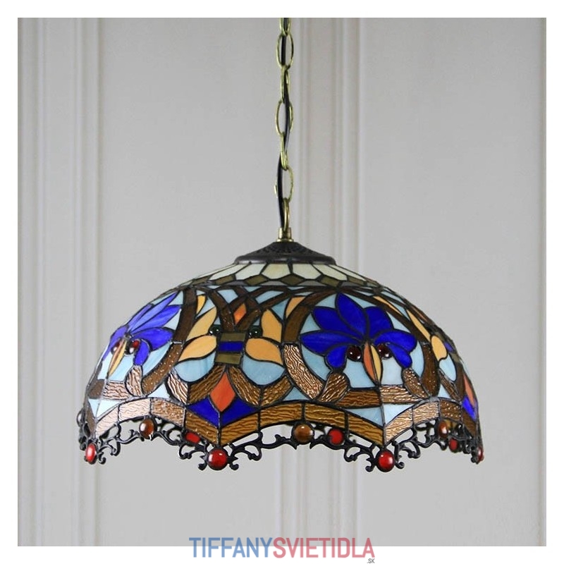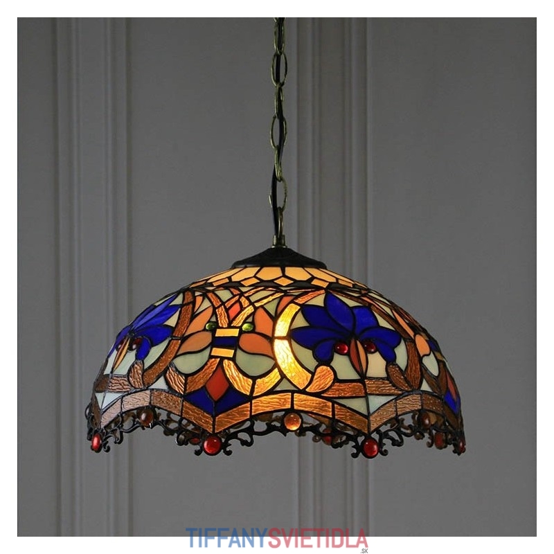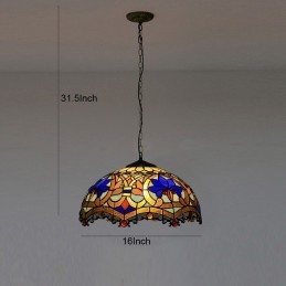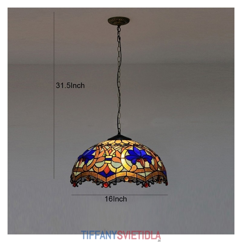 16-palcové závesné svietidlo v štýle Tiffanyho Starožitné kvetinové závesné osvetlenie z farebného skla