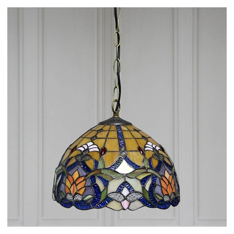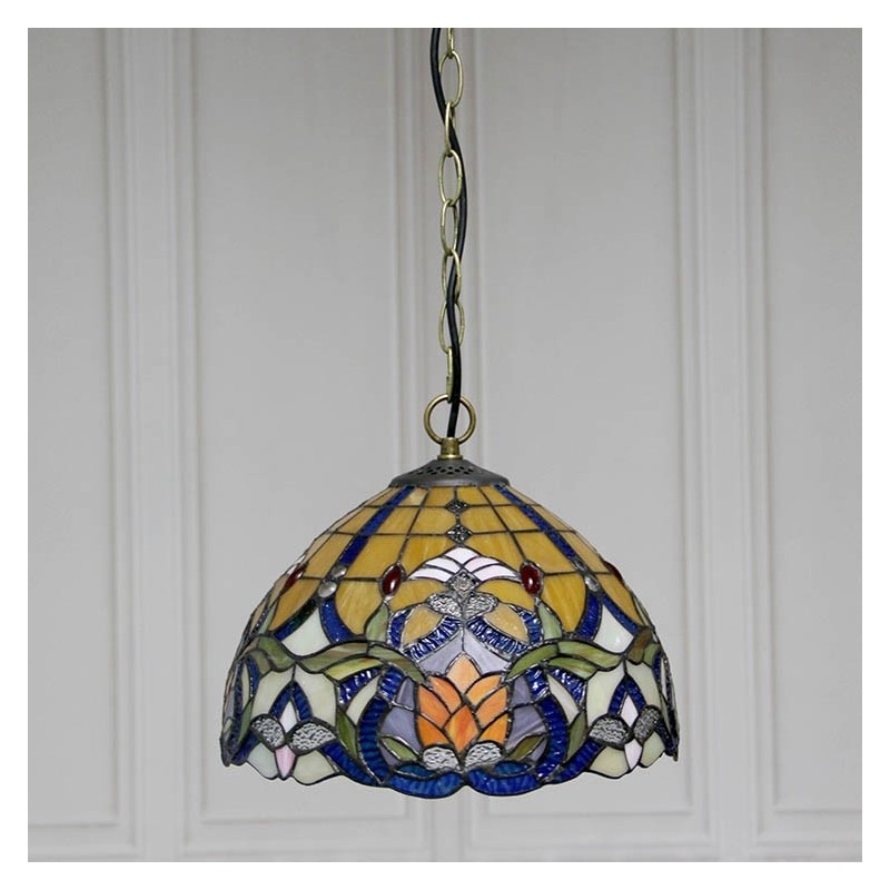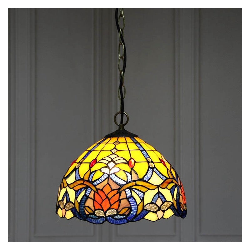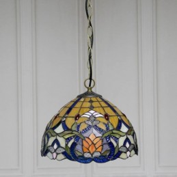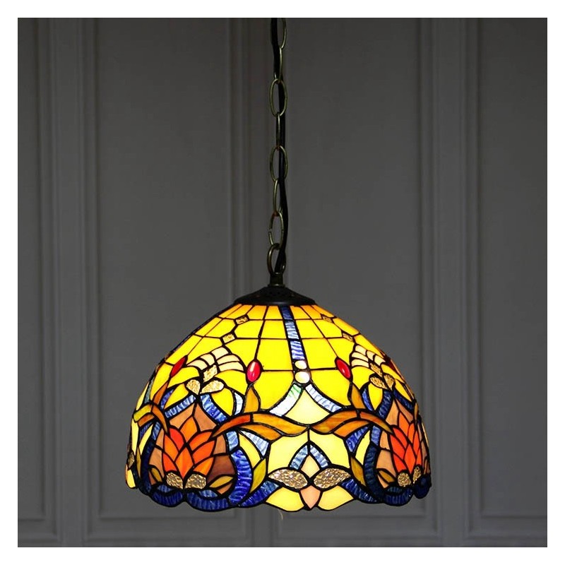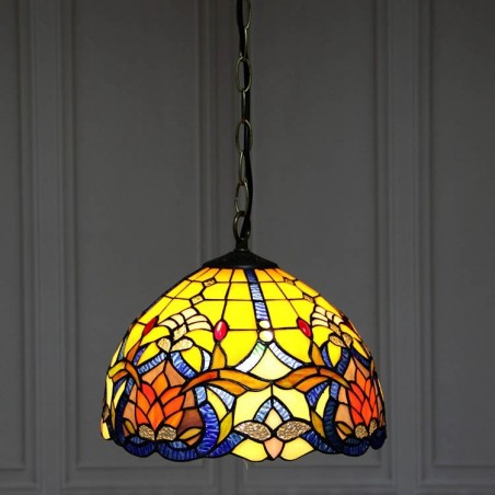 12-palcové závesné svietidlo v štýle Tiffanyho Elegantné závesné osvetlenie z farebného skla s 1 svetlom
