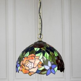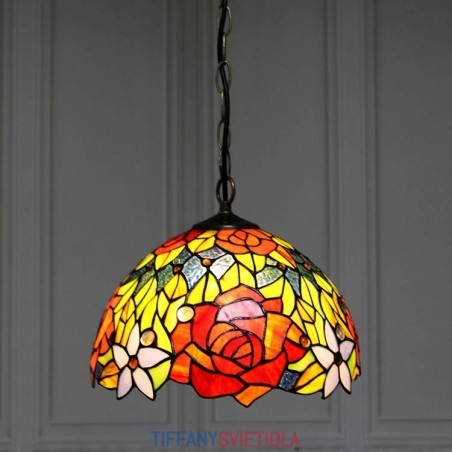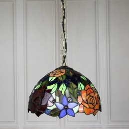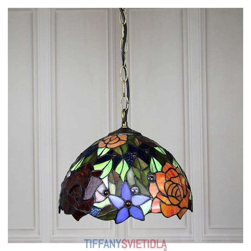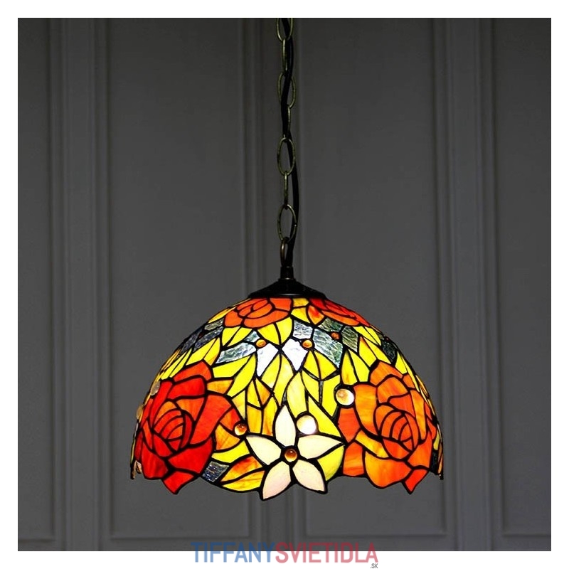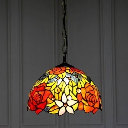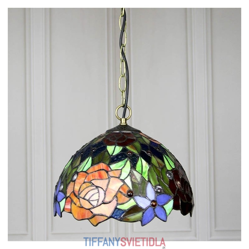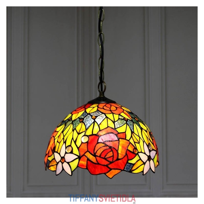 12-palcové závesné svietidlo v štýle Tiffanyho s ružovým kvetom vitráže závesné osvetlenie s 1 svetlom