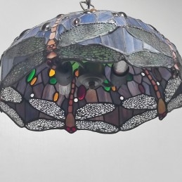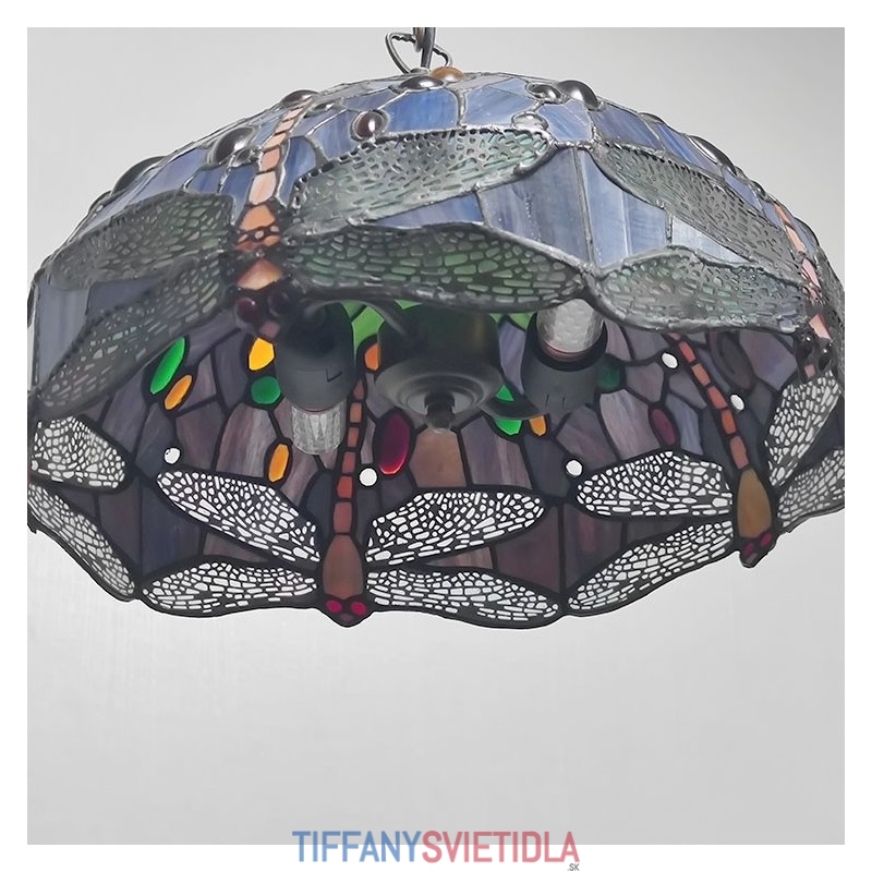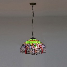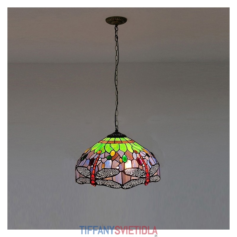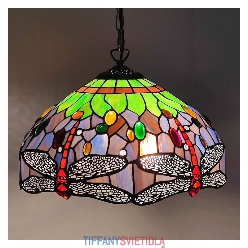 16-palcová závesná vitrážová lampa v štýle Tiffany Červená vážka stropná vitráž
