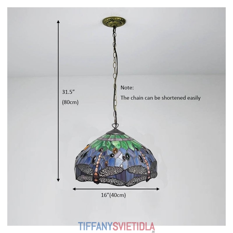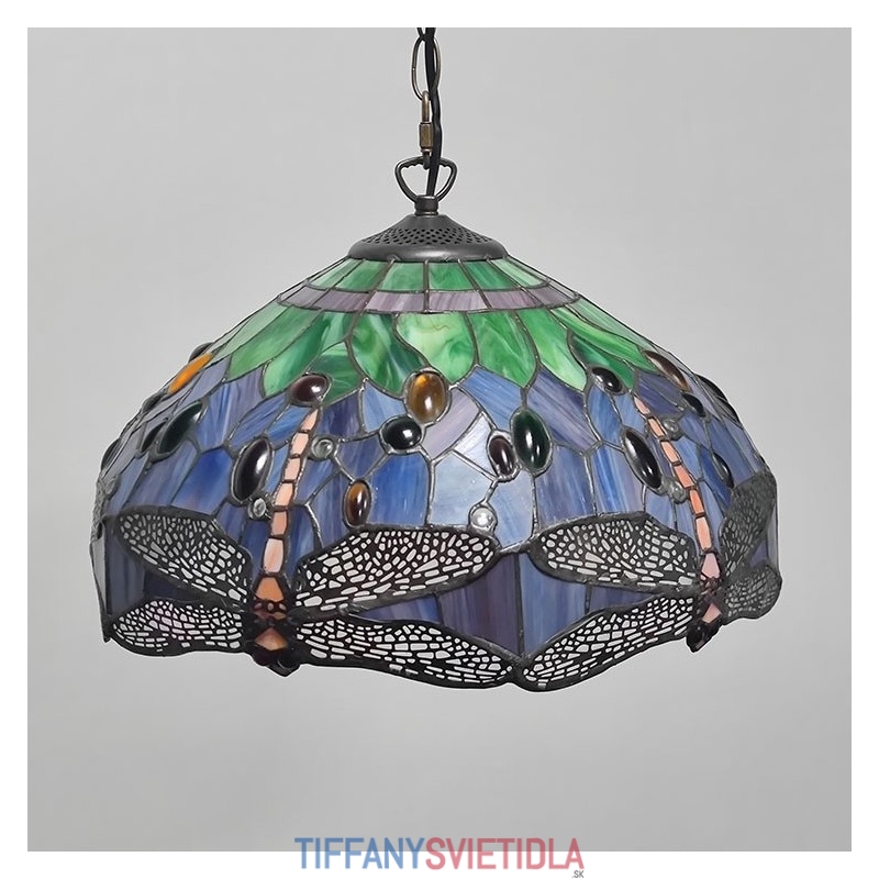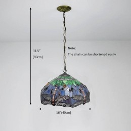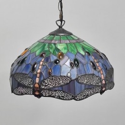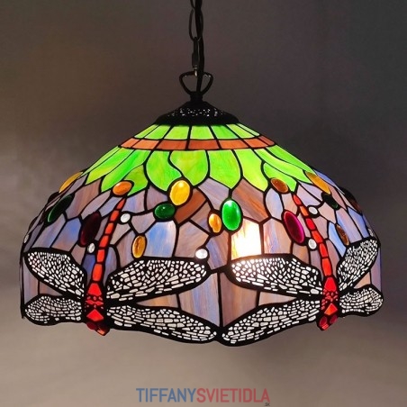 16-palcová závesná vitrážová lampa v štýle Tiffany Červená vážka stropná vitráž