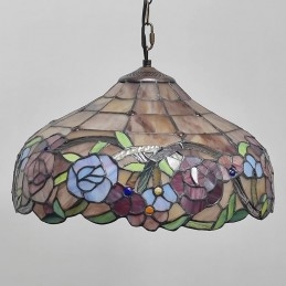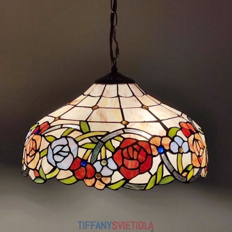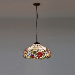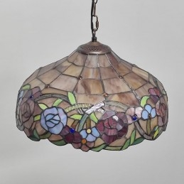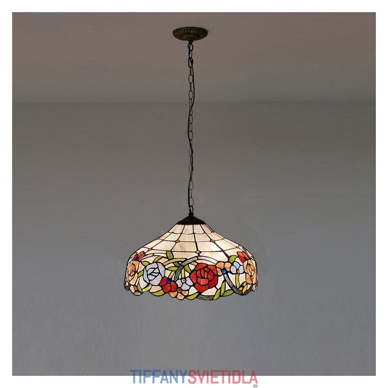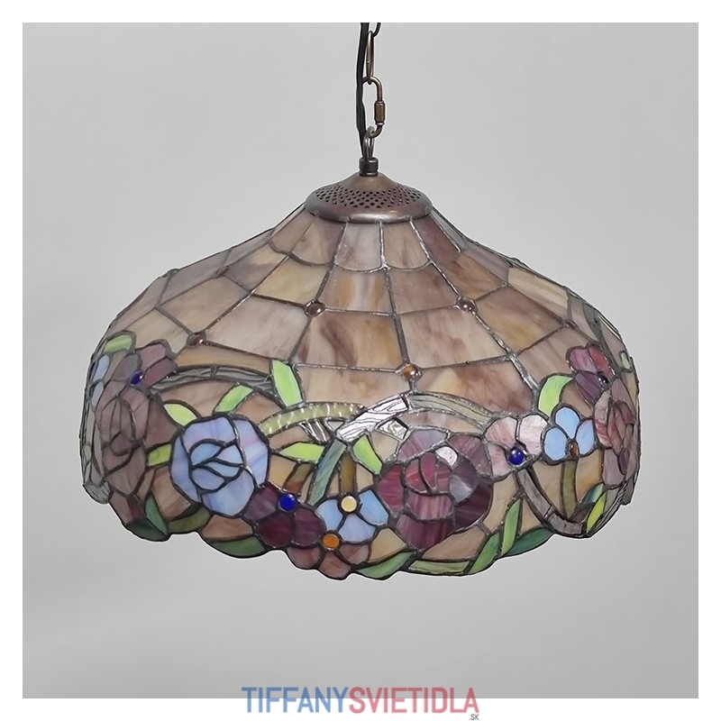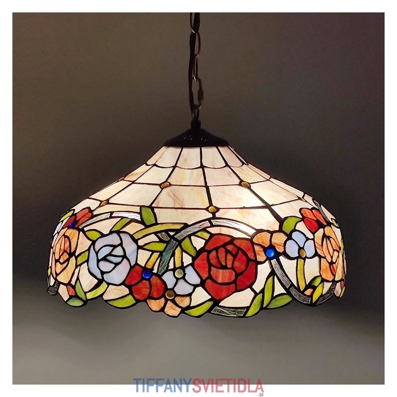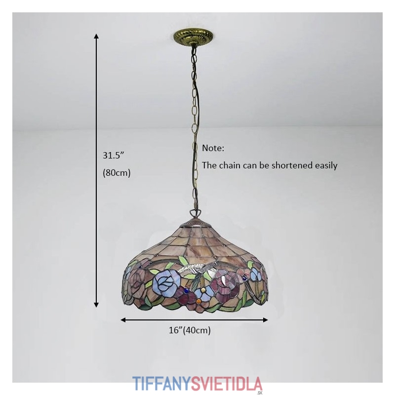 16-palcová závesná vitrážová lampa v štýle Tiffany Jedinečné ružové stropné vitrážové svietidlo