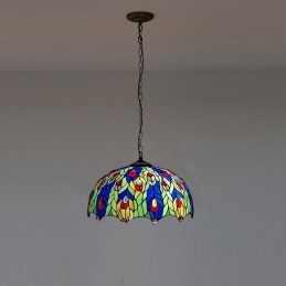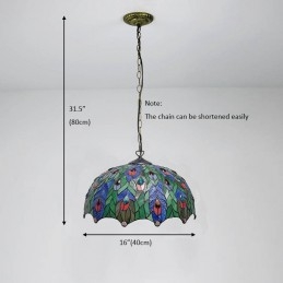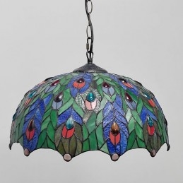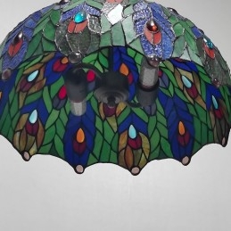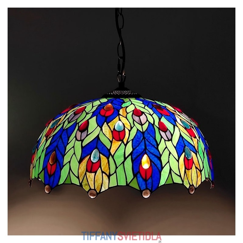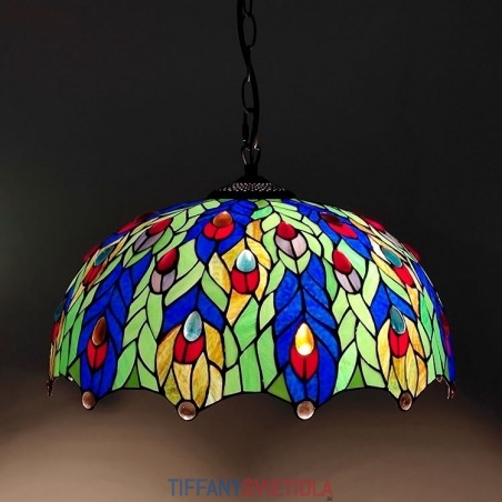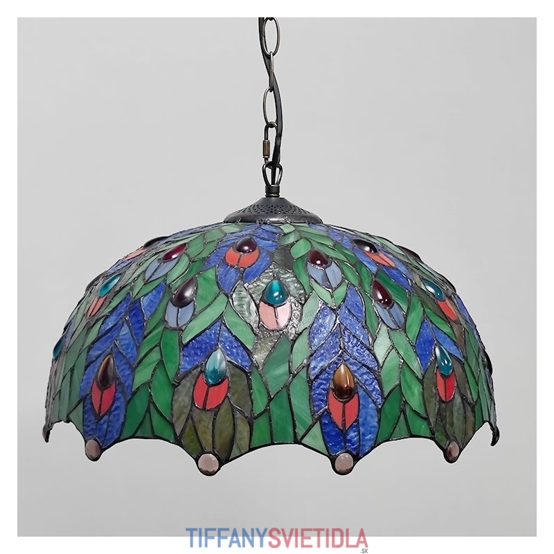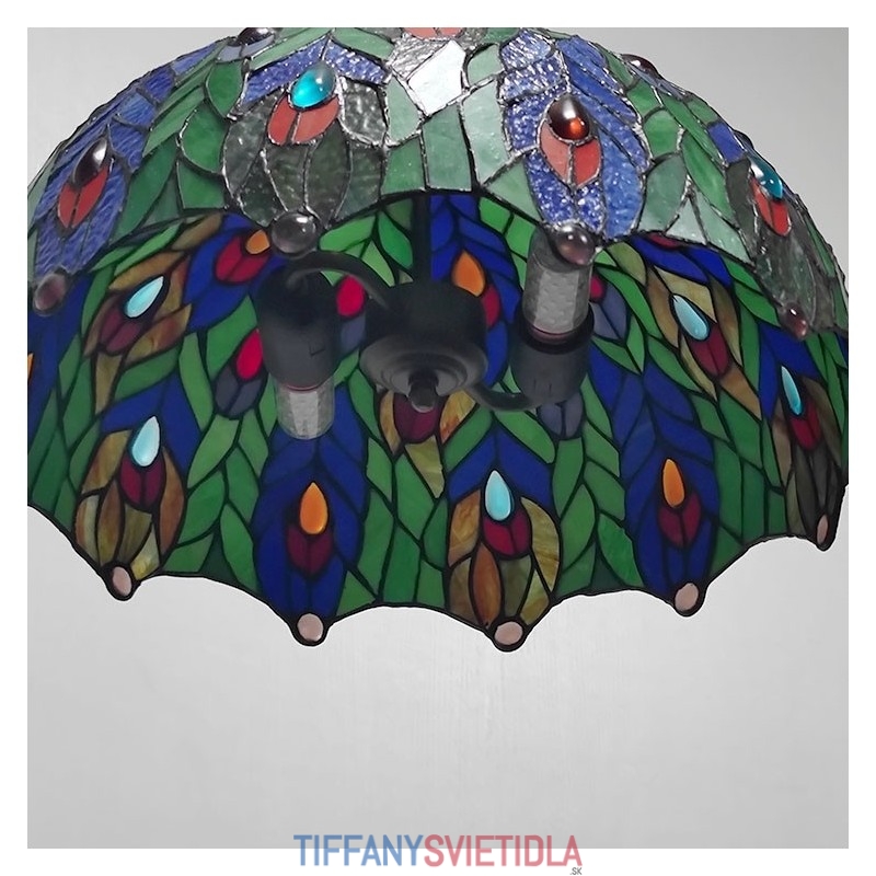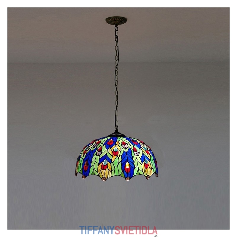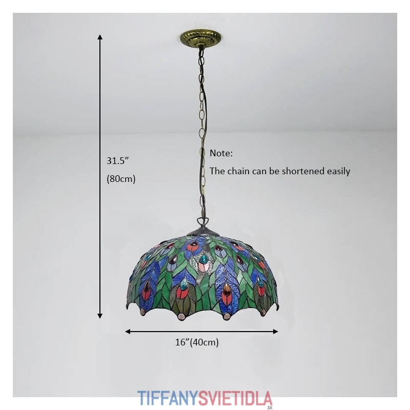 16-palcová závesná vitrážová lampa v štýle Tiffanyho Pávie pierko stropná vitráž