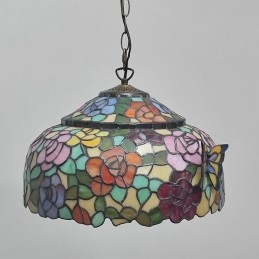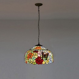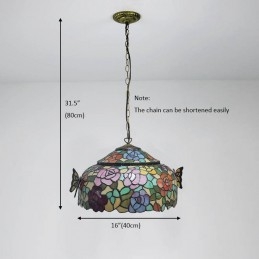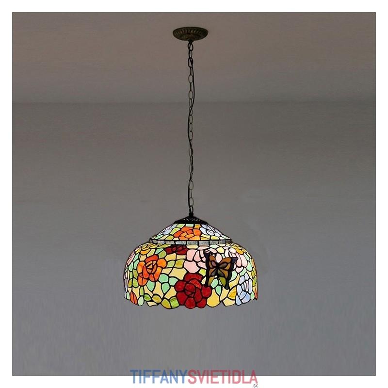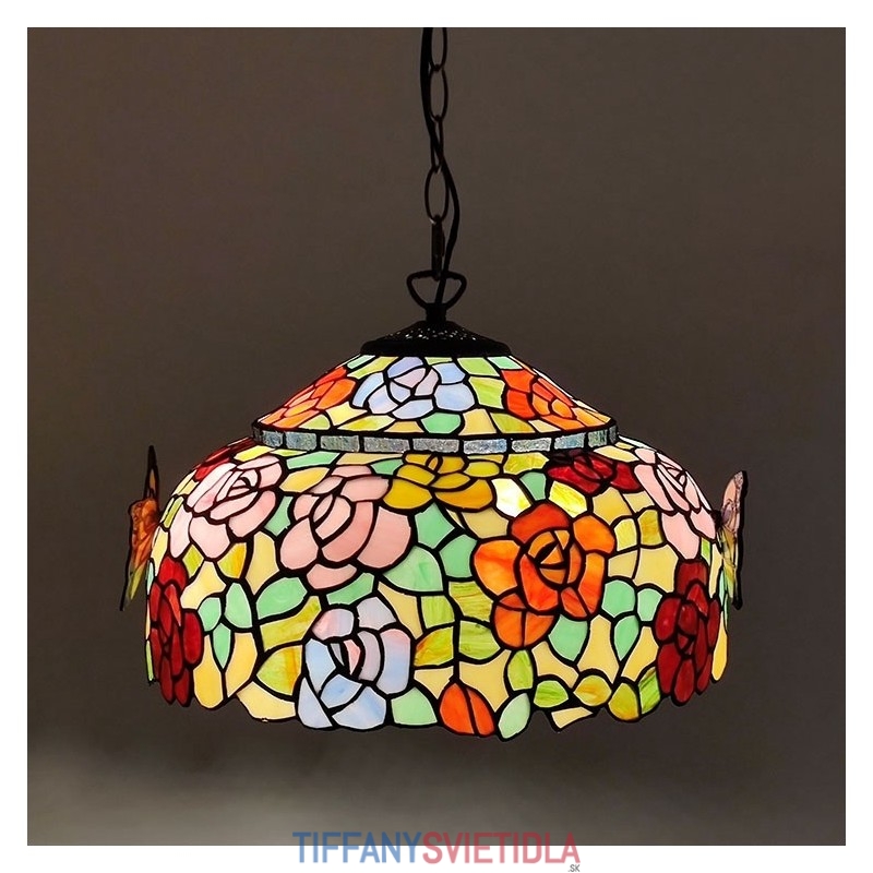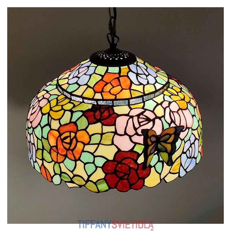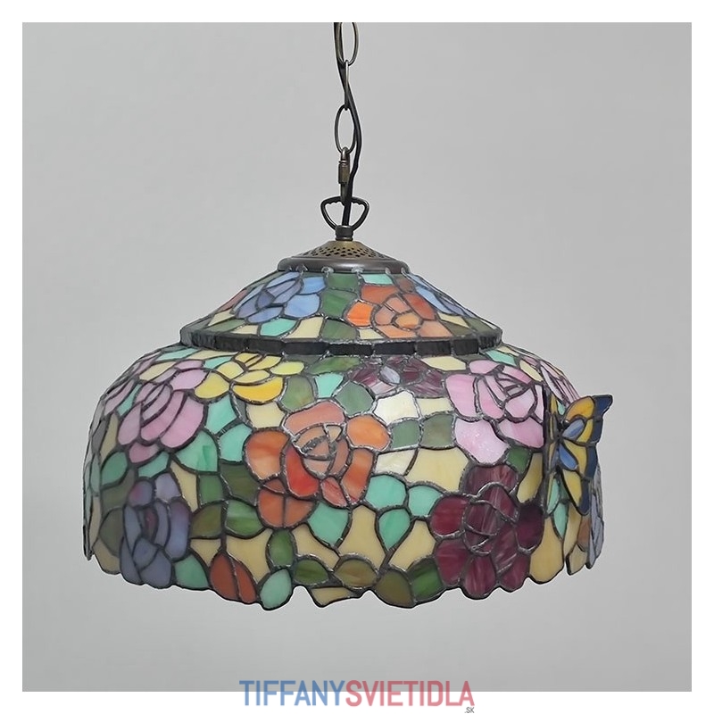 16-palcová závesná vitrážová lampa v štýle Tiffany Butterfly Rose Stropná vitráž