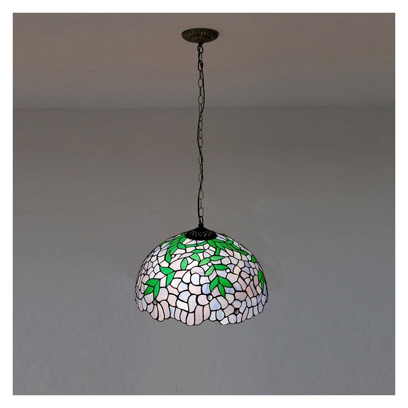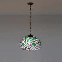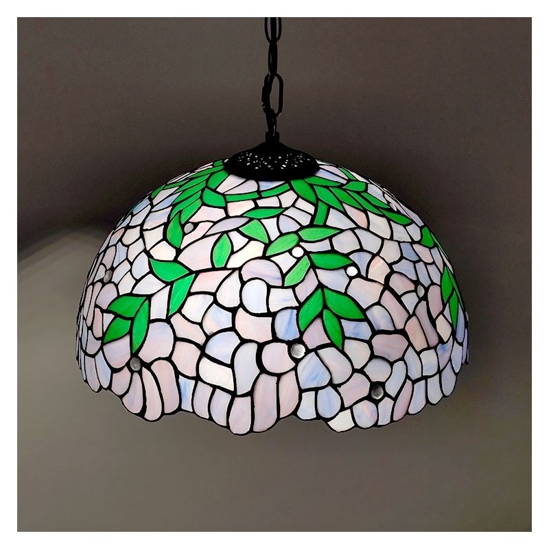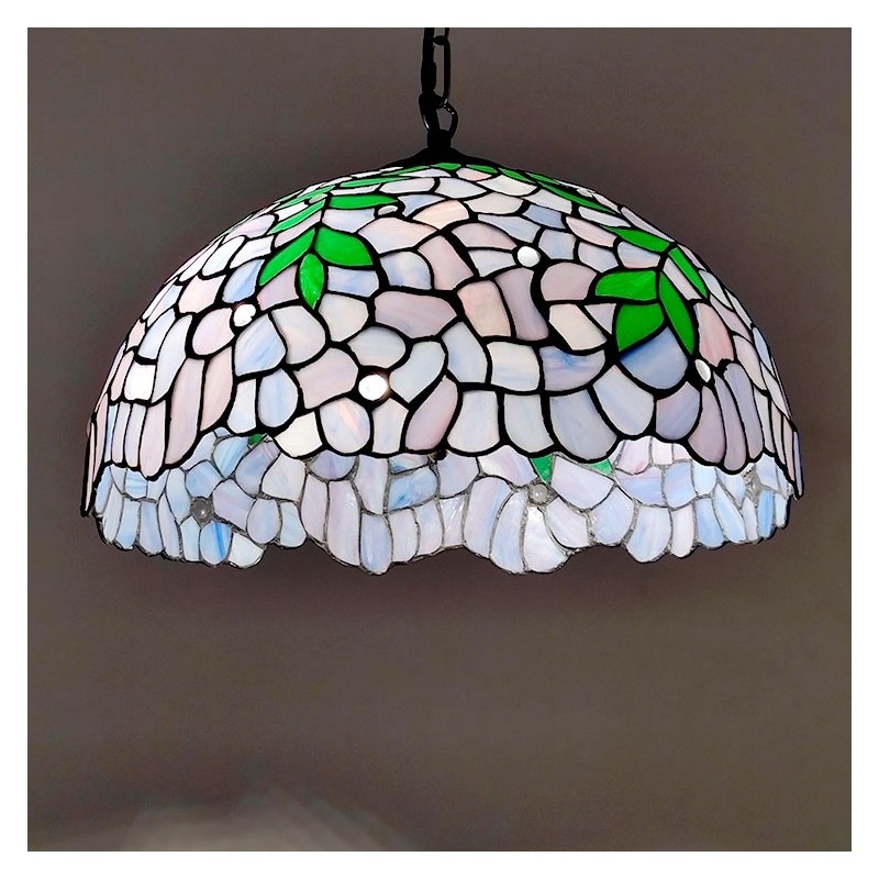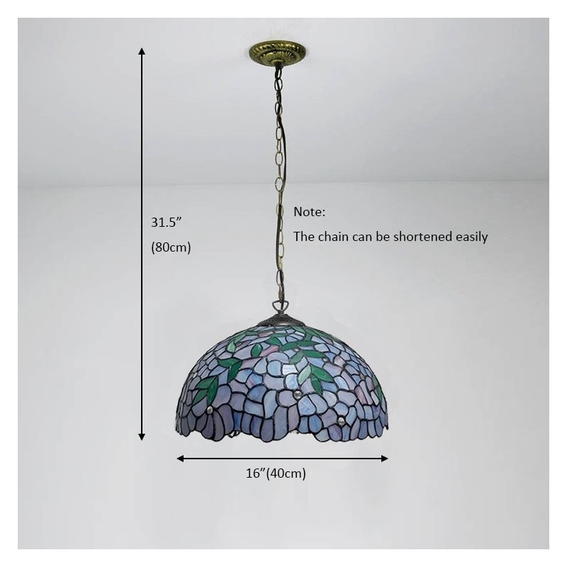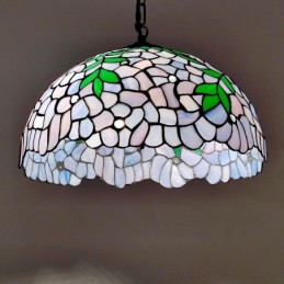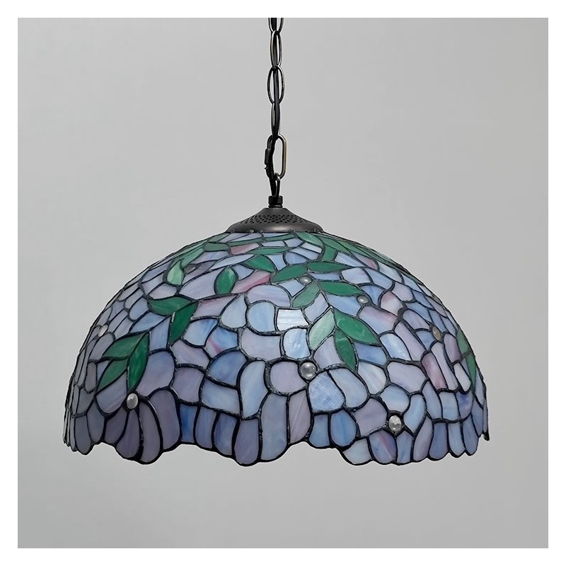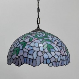 16-palcová závesná vitrážová lampa v štýle Tiffany Vintage fialová Wisteria stropná vitráž