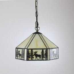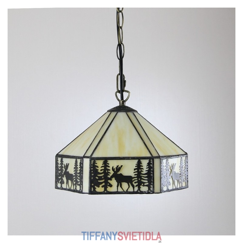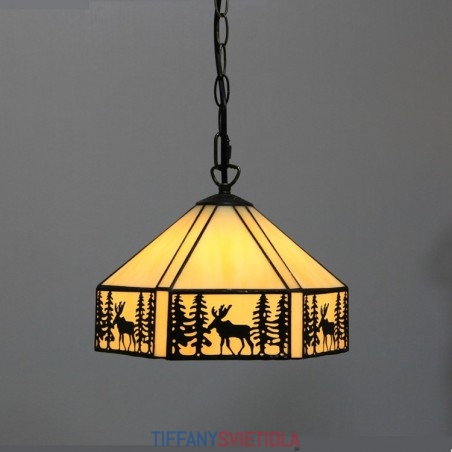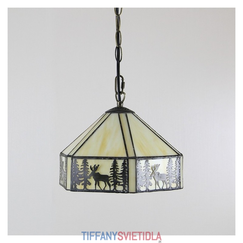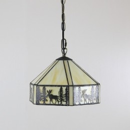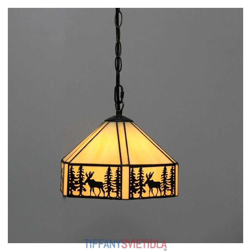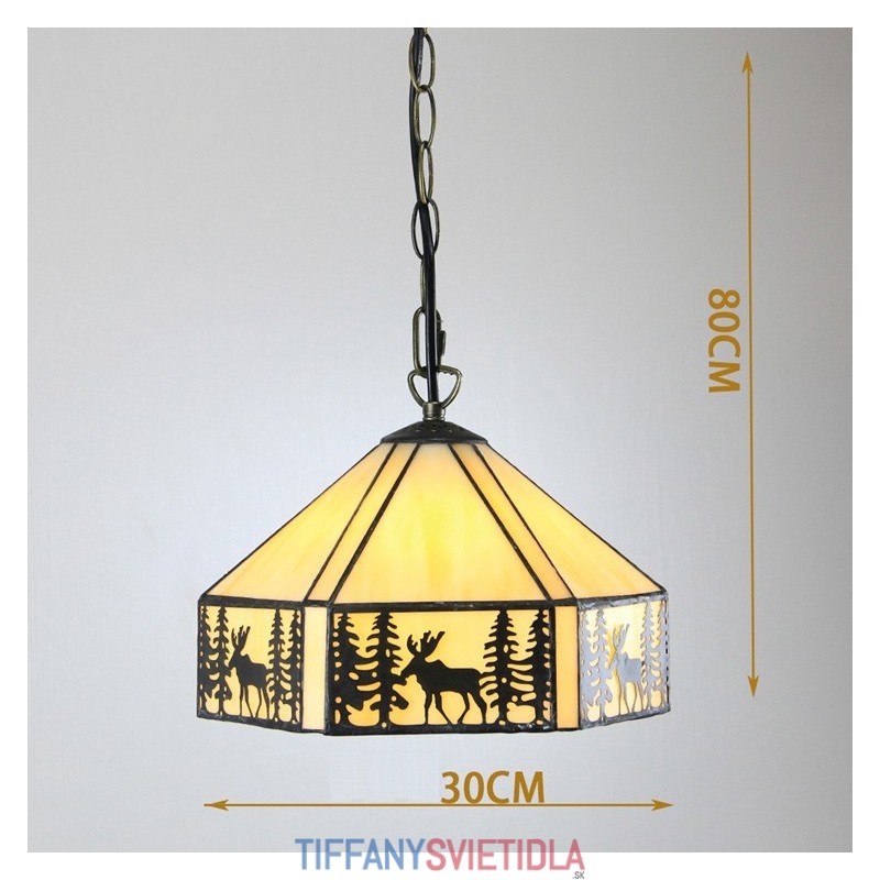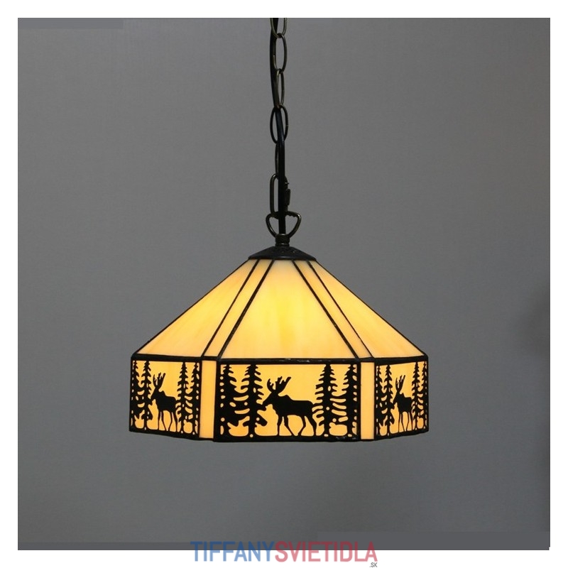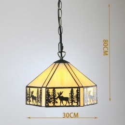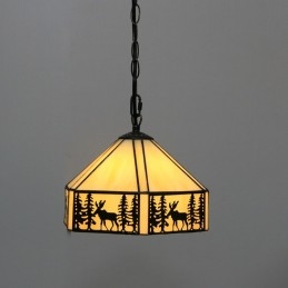 10-palcová závesná lampa v štýle Tiffany Vintage Deer so stromami Tienidlo z farebného skla Stropné závesné svetlá